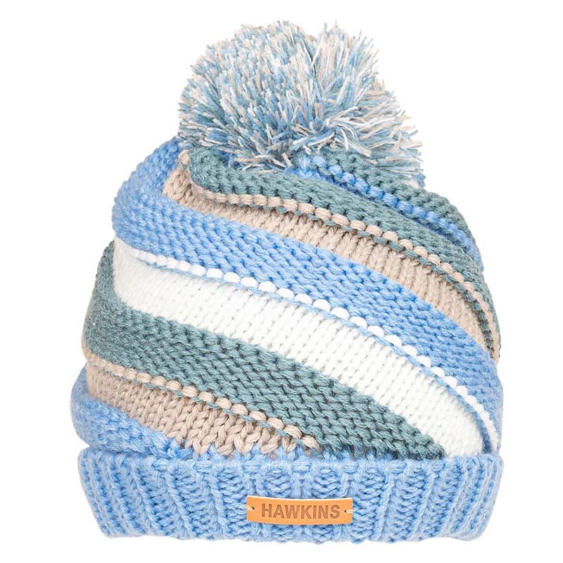 Girls chunky knit stripy bobble hat with teddy faux fur lining.