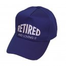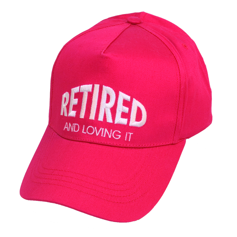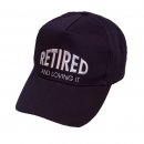 Baseball with embroidery 'retired and loving it', and buckle adjuster