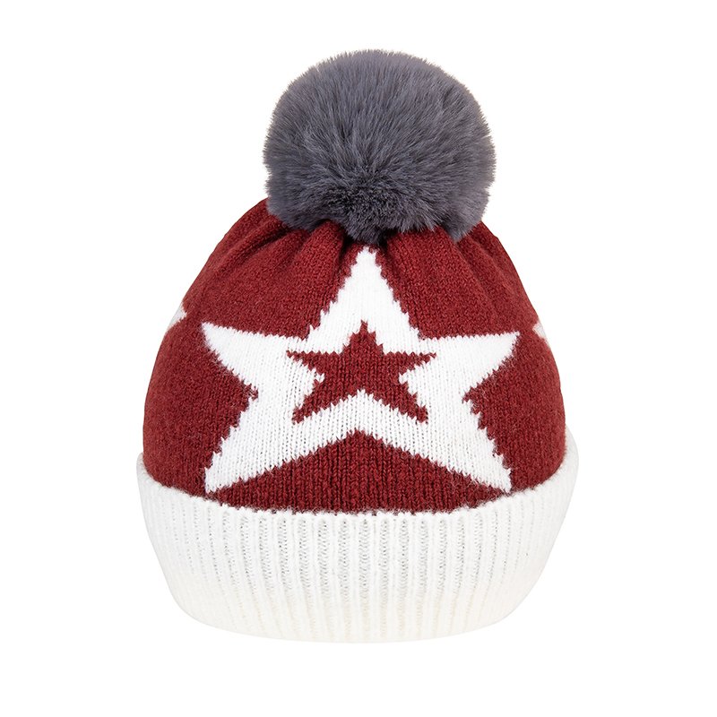 Ladies star print knitted bobble hat